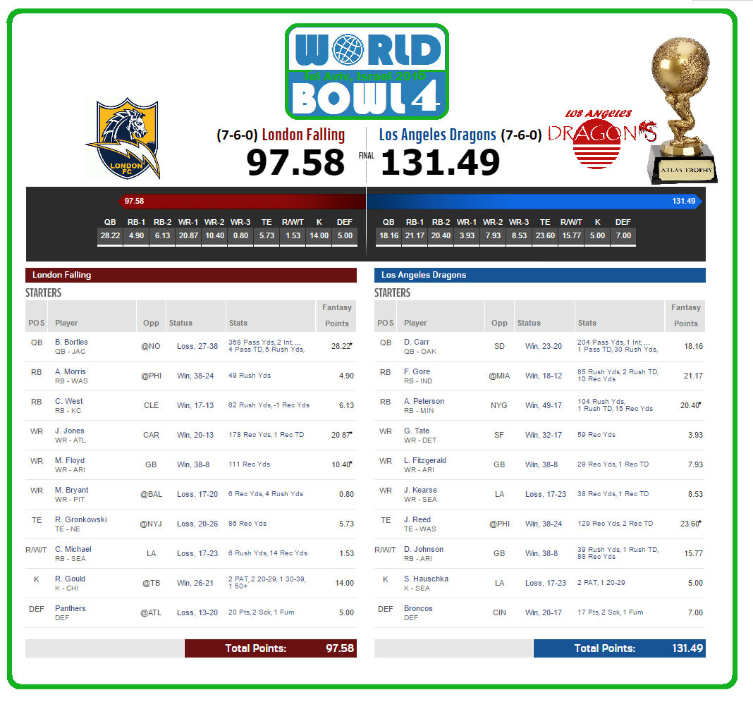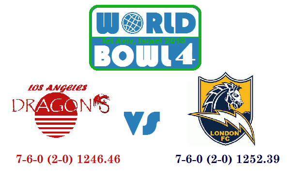 After defeating the League #1 and #2 teams – Buenos Aires and Jerusalem – the Dragons and Falling head to World Bowl 4, the second time for London.